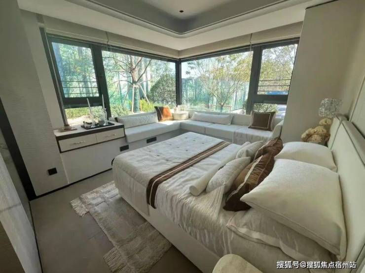 主卧套房设计,配备270°转角飘窗,对比110㎡户型尺度更大,附赠更多!