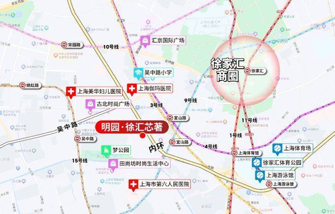 明园·徐汇芯著位于徐汇内环旁,与徐家汇新一代地标徐家汇中心(在建)直线距离仅约1.2公里。项目周边三公里群星璀璨,涵盖古北国际社区、徐家汇商圈、漕河泾开发区、徐汇滨江,近享世界化的繁华版图