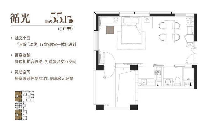 C|循光|建面约55.17 m²|一室一厅一厨一卫