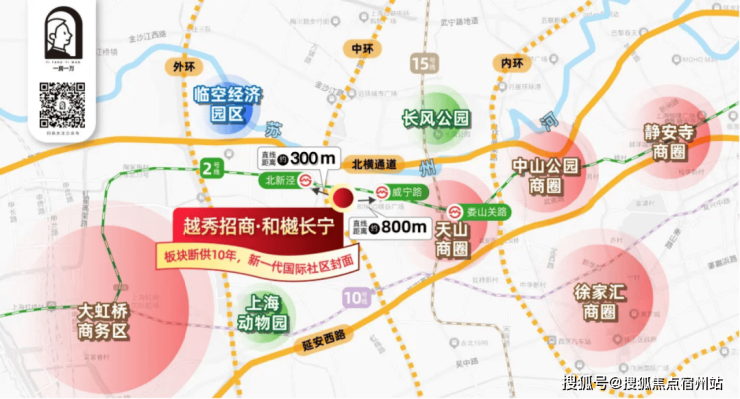 而上海的城市脉络中,地铁2号线恰是一条贯通东西的时代中轴——直线距项目北新泾站约200米、威宁路站约800m,东达中山公园、静安寺、人民广场、陆家嘴,西通虹桥枢纽与机场,串联起城市核心商圈与国际门户,成为上海无可替代的交通中轴。