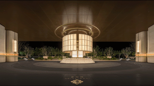 整个公区引入沉香米黄、透光云石、安哥拉黑、福鼎黑、橙皮红、宝格丽紫等近二十种全球奢石,宛如一座流动的奢石博物馆。