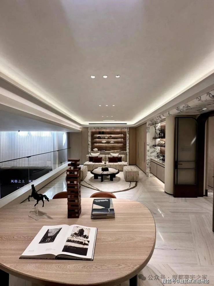 步入约260㎡样板间,奢华大气的空间叙事即刻令人惊艳。设计师采用大开间布局配合高窗墙比设计,在客餐厅区域创造出“思想共振场”——这里不仅是社交空间,更是光影与思想共舞的容器。