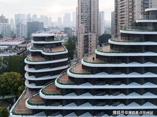 突破传统住宅模式、打造创新型住宅的概念是在设计团队最初接洽项目任务时便形成的预期,这不仅仅是基于空间功能需求及严苛限制条件下的解决方案。设计师提出采用自然有机的建筑轮廓,通过层层退台的设计手法,象征峡谷的层叠和流水的起伏,模拟自然的“山水”意向,形成多维立体的城市观景露台,宛若“城市风景中的梯田”。以此创造独特的城市天际线,与黄浦江互为风景,在体现亲切洒脱的建筑性格、呼应当下时代感的同时,也使建筑兼具功能性与艺术性。