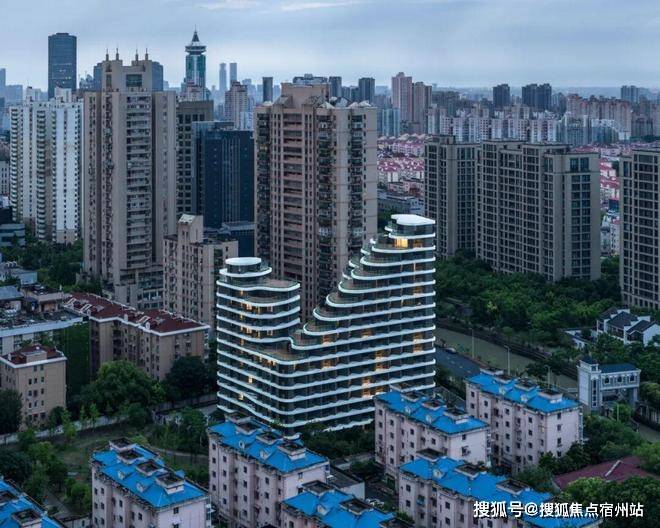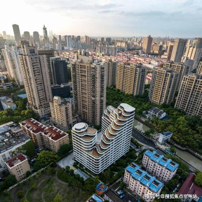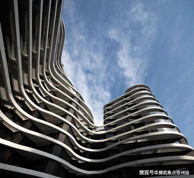 建筑向上层层叠高、向内退进的波浪线型,形成了多维立体的生态居住空间。垂直叠置的弧线形露天观景平台作为私享空间,并根据不同朝向的户型将露台角度开设到最宽,呈现“全画幅”式的景观视野,将城市景观价值最大化的同时,也串联立面转折、观景阳台、屋顶绿化和空中花园,消隐弱化了传统住宅前后错动的复杂轮廓,强化建筑的整体性。柔美的立面山水景观也点染了城市界面,退后的部分更像是传统山水画中的“留白”处理,引人无限遐思。