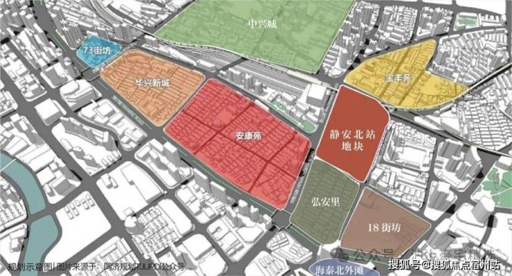 2010-2017年,上海市人民政府共确定了44片历史文化风貌区、250处历史文化风貌保护街坊。静安北站地块旧址北站新城作为约250处风貌保护街坊之一,位属二级新旧融合范围。
