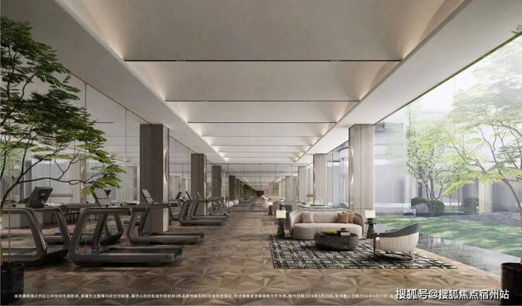 虽然当下来看,它的公区打造是符合市场主流水平的,但在项目23年9月首开入市的时候,它的高品质公区绝对是当时新房项目中的翘楚。项目的主要会所功能集中在一期,打造了 约1500㎡的下沉式会所,功能涵盖恒温泳池、健身房等。