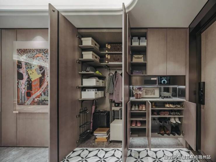 重点说说该户型的收纳,大量S墙的设计简直见缝插针,极大的扩容了家的储物角落,消减了业主生活的繁琐。