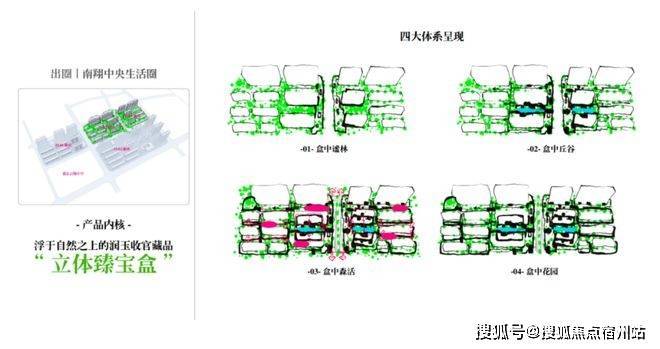 继续往里走,映入眼帘的是二期园林景观——绿野仙踪。它拥有5重立体园林、3大组团、7大森境花园,精心规划了盒中谧林、盒中丘谷、盒中花园、盒中森活等四大园林体系,仿佛一个蓝绿臻宝盒。