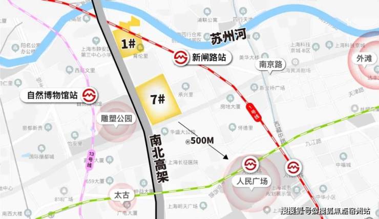 绝对的黄金地段,其中1号地块临苏州河,离1号线新闸路站也很近。