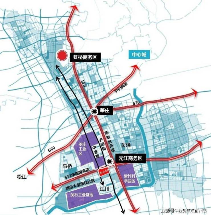 2021 年闵行“十四五”规划提出实施“南北联动”空间发展战略,打造北有虹桥国际开放枢纽,南有上海南部科创中心。闵行是上海主要对外交通枢纽,它的南北各有一个发展核心,即北部莘庄城市副中心和南部科创中心, 同时闵行是上海西南地区重要的工业基地、科技及航天新区;根据2035规划,闵行南部单元将建设成为“科创赋能闵南,深度产城融合——建设产业创新、活力人文、品质生态的上海南部科创中心核心承载区。