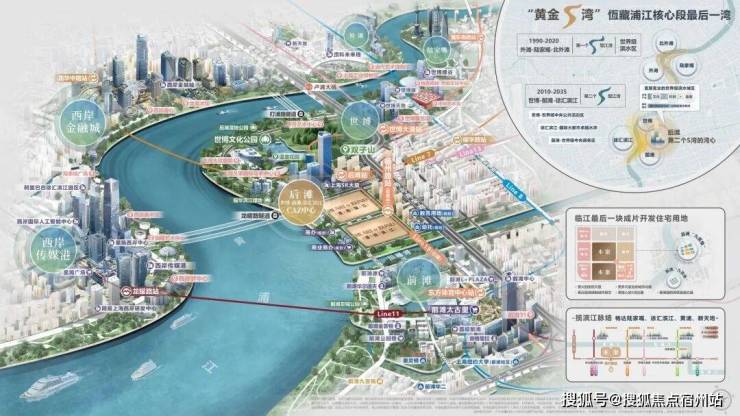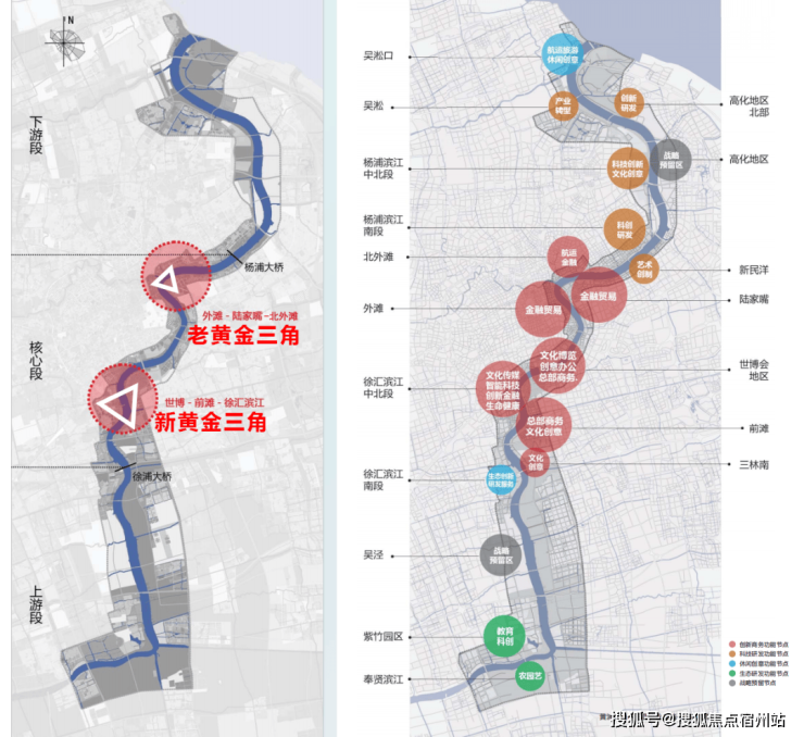 2035年“一江一河”战略明确,黄浦江沿岸将形成两大黄金三角: