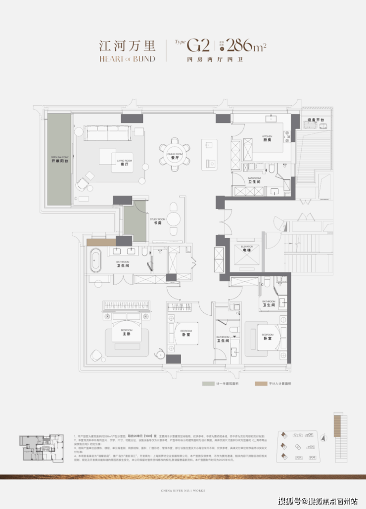 建面约226㎡户型,以平权的居住理念,打造有4房4卫3套房的越级产品。建面约286㎡户型,层高3.3米,更采用无窗墙比框筒结构,是全上海目前唯一可售的三面看江全景舱,珍藏属性拉满。