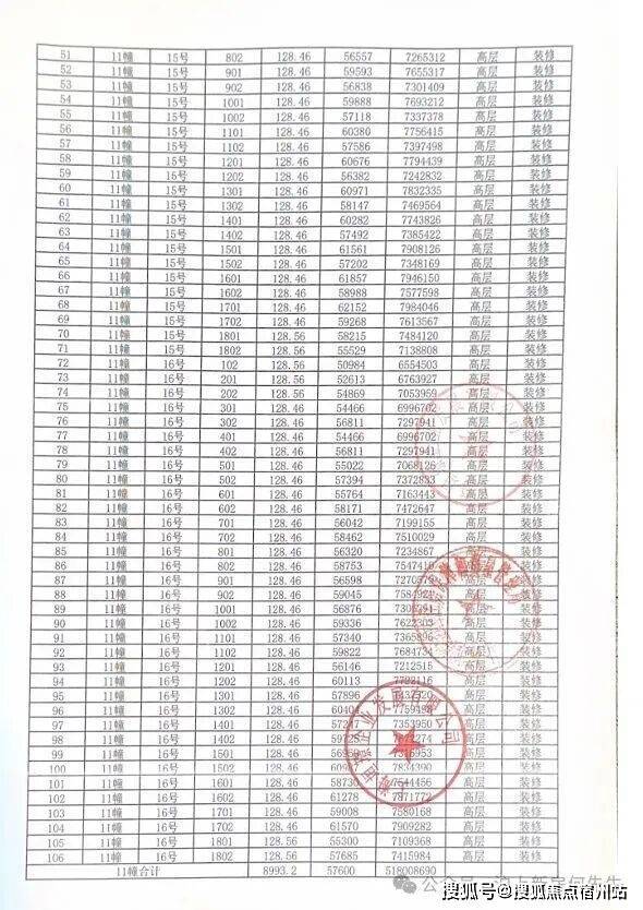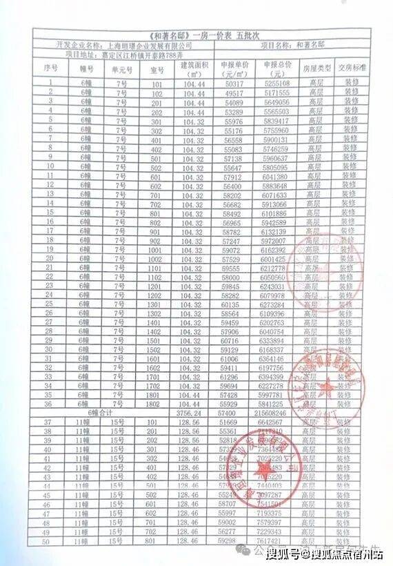 一房一价表发布!
