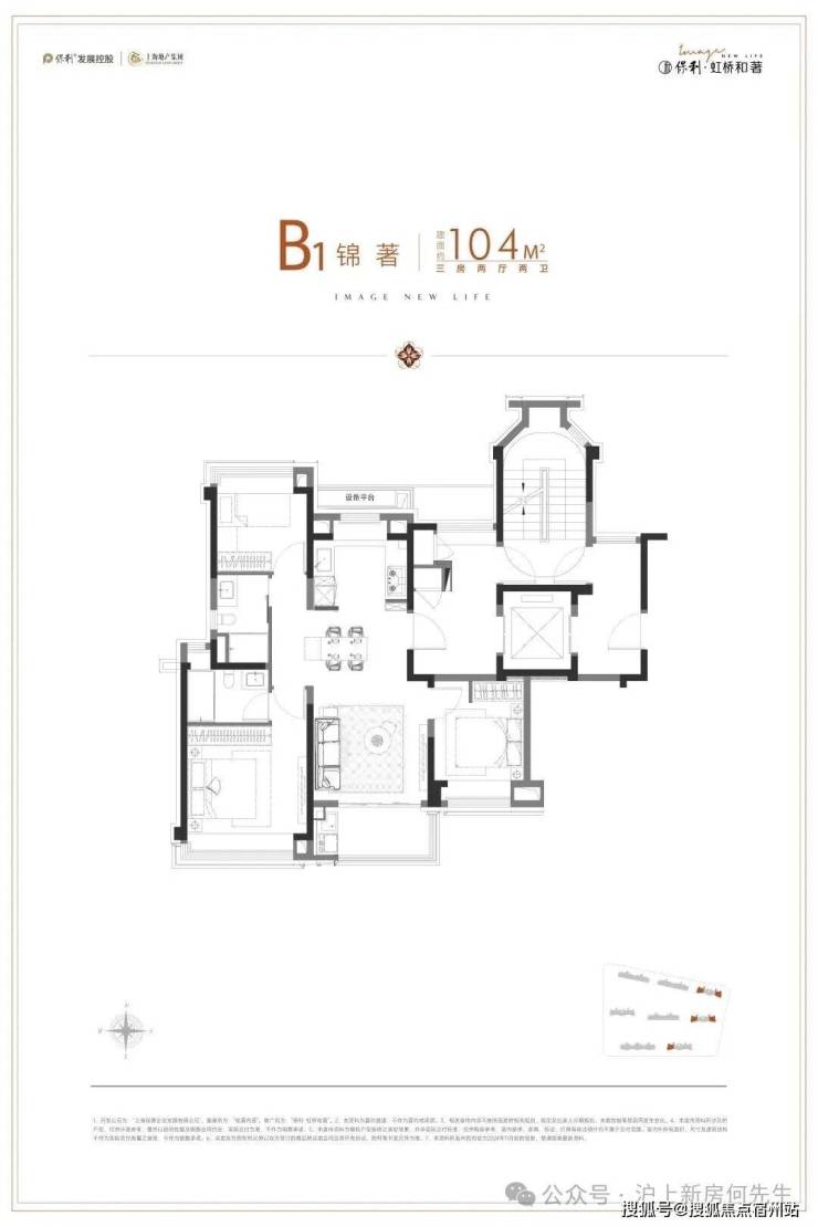 先说户型:如果你熟悉上海市场,你会发现目前市面上的户型普遍会面临:利用率低、收纳空间少、有连廊、卫生间少/功能性差、卧室太小不够等问题。 但保利虹桥和著的建面约104㎡3房2卫, 却很好的解决了以上所有问题: