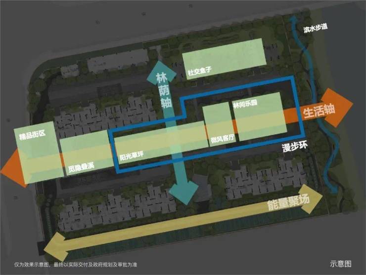 最后,小区虽然不大,但社区功能性和仪式感十足,整体打造了生活林荫双轴、能量聚场以及五重归家礼序。