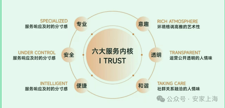 【保利虹桥和颂】全新作品,将品质服务品牌"亲情合院"深度融入日常生活,以 "让家更暖"初心理念,围绕 真、善、美、和四大维度,在社区落地呈现 " I TRUST "六大服务体系,打造有生命的空间,有温情的社区,有质感的生活。