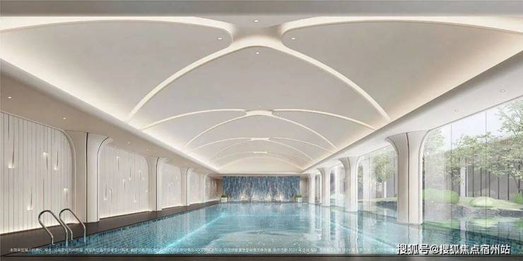 虽然当下来看,它的公区打造是符合市场主流水平的,但在项目23年9月首开入市的时候,它的高品质公区绝对是当时新房项目中的翘楚。项目的主要会所功能集中在一期,打造了 约1500㎡的下沉式会所,功能涵盖恒温泳池、健身房等。
