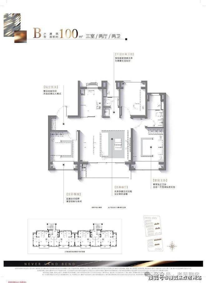 建面约100㎡宽厅三房,改善家庭至优选:在南向三开间的基础上,该户型“创新横向宽厅,营造百平米少有的客厅尺度“打造3.5南向面宽。