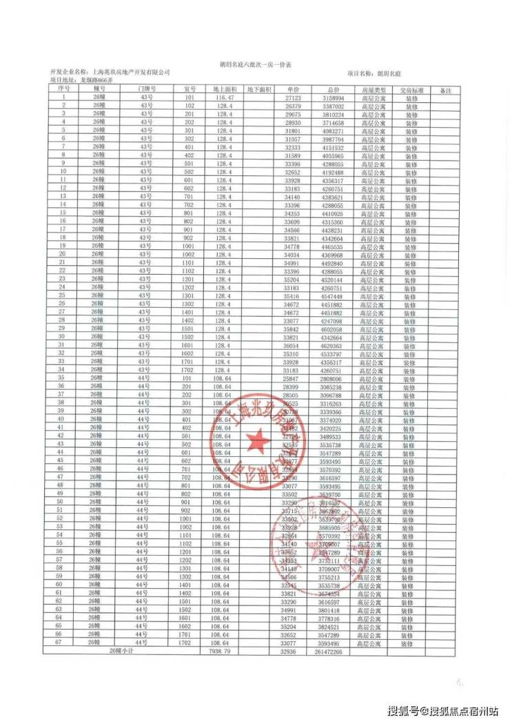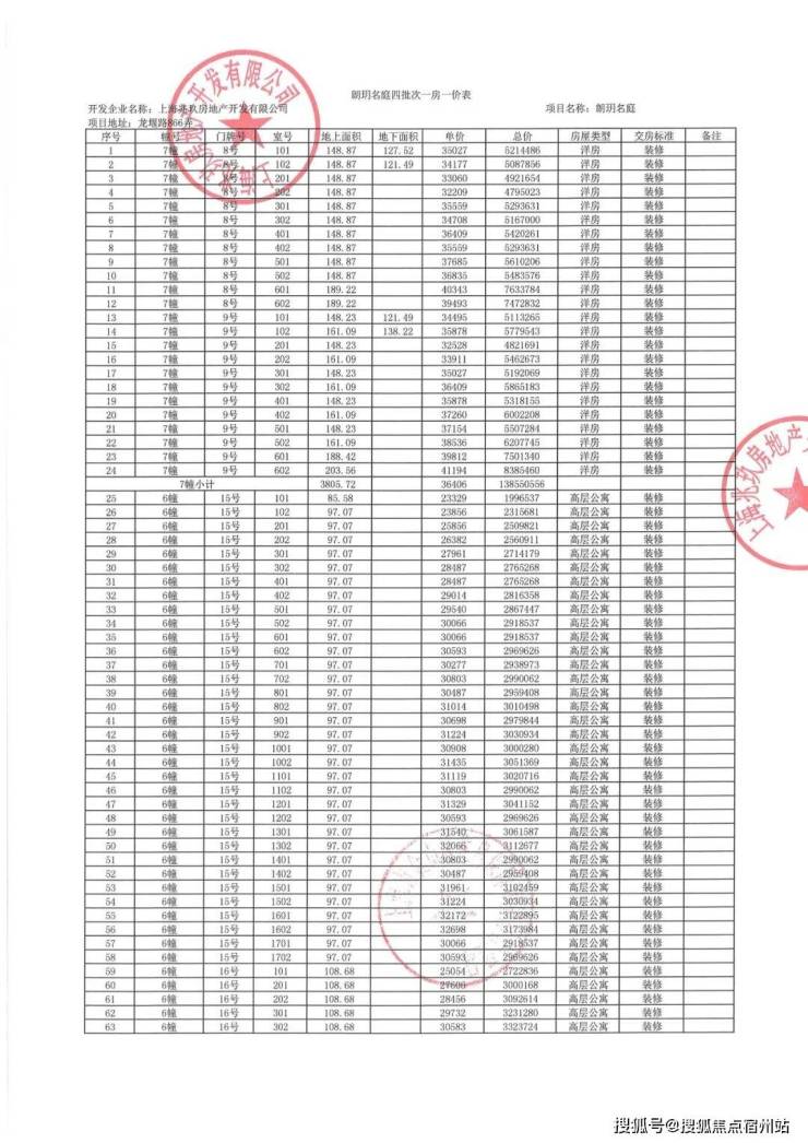 上期一房一价表: