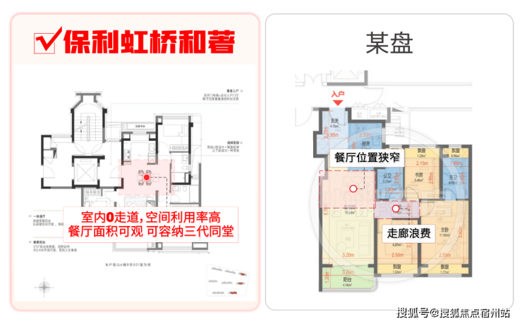 但保利虹桥和著的建面约104㎡3房2卫,却很好的解决了以上所有问题: