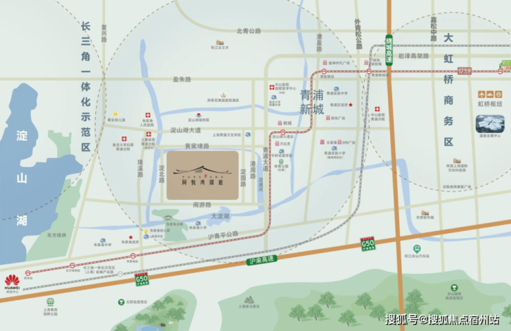 项目与17号线淀山湖大道站直线距离约2.5公里,通过17号线可直达虹桥商务区,并且能无缝换乘2/10号线,快速接驳上海市中心。