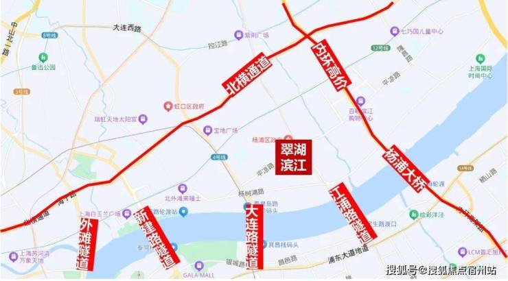 自驾也极为方便。项目本身就在 北横通道 和 内环高架 围合之内,交通便利,通达全城。同时,直线两公里还有 新建路隧道、大连路隧道、江浦路隧道以及杨浦大桥 直达浦东。