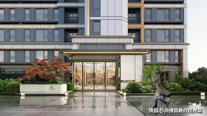 ⼊户单元门头延续奢华酒店的美学质感,用奢石、铝板等材料,打造殿堂级的归家仪式感