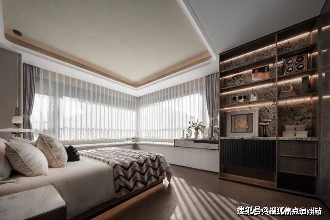 在传统的四房领域,2房朝北几乎是逃不掉的问题,但在招商中旅·观境,做到了三间卧室朝南,并且主卧拥有一个约270度的主卧无柱转角飘窗