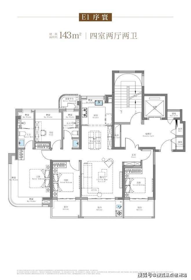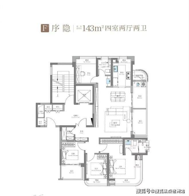 143㎡四房户型,打造了阔绰横厅,主卧套房奢阔,兼顾多孩家庭与三代同堂的需求。该户型更具颠覆性的是创新“三阳台+270°环幕飘窗”设计,南向阳台面积达18㎡,实际使用空间堪比160㎡产品。无论是观景晾晒还是打造专属休闲区,都绰绰有余。主卧套房设计,配备了独立的衣帽间和卫生间,为业主提供了私密的居住空间,提升了生活的品质感。