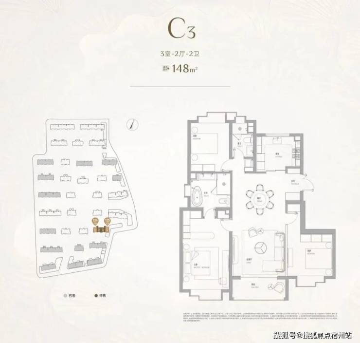 建面约148㎡3房是前期大卖的爆款户型,全屋4飘窗+宽面阳台的设计,不管是实用性、收纳、尺度感、私密性还是居住舒适度,通通拉满。