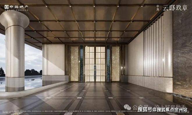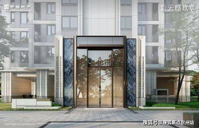 中海云邸玖章售楼处电话400-856-9058入口两侧的墙面采用天然淡 黄色木纹大理石——“法国木化石”,入口 门 厅“曲屏”更考验 弧形玻璃成型的工艺,以及施工成本。