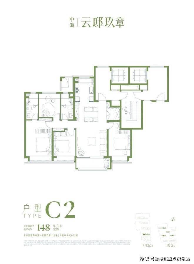 中海云邸玖章售楼处电话400-856-9058格局方面该户型直接做到了四开间 朝南,同时室 内布局又规整,造就了一个方正无比的客餐厅阳台一体化空间,视野几无遮挡,气度非凡。