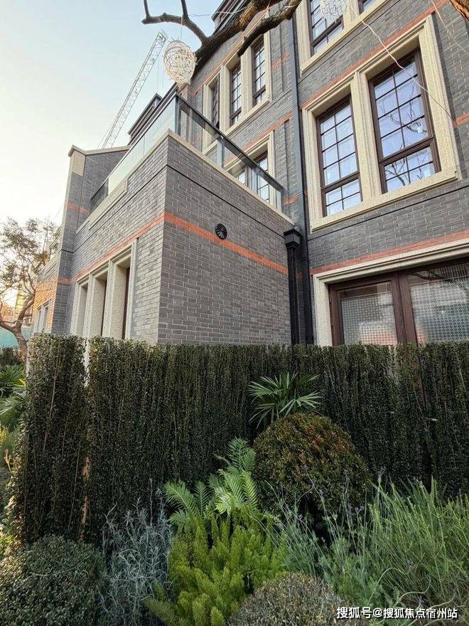 建筑设计上,项目融合海派石库门经典与现代美学,既传承老上海历史文脉,又契合当代高端居住审美。高层外立面采用蓝灰色玻璃与仿铜色铝板搭配,线条简洁大气,窗墙比高,最大化保障室内采光与观景视野;风貌别墅则复刻石库门经典元素,保留红砖、青砖、门头石箍等传统工艺,修旧如旧,还原老上海里弄的矜贵感与烟火气,同时融入全景落地窗、大面宽设计,实现 “借景入室”,与苏州河景致相融。项目退让红线约 2 米,打造约 110 米浓荫街区,重现上海经典花园别墅的 “墅与树” 组合,营造仪式感满满的归家体验。