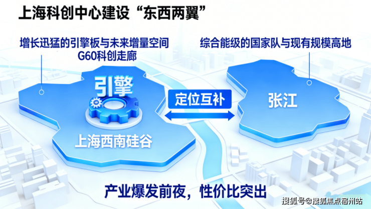 从城市大操盘底层逻辑来看,两者 定位互补, 洞泾&张江共同构成上海科创中心建设的“东西两翼”,因此无论是在规划高度,还是能级潜力, 洞泾的超级能量都足以并肩张江。 G60引擎,定义上海西南“硅谷”,这里正处产业爆发前夜,性价比突出!