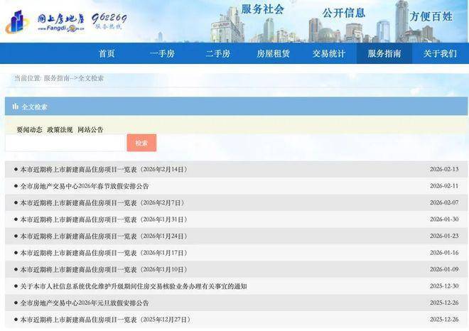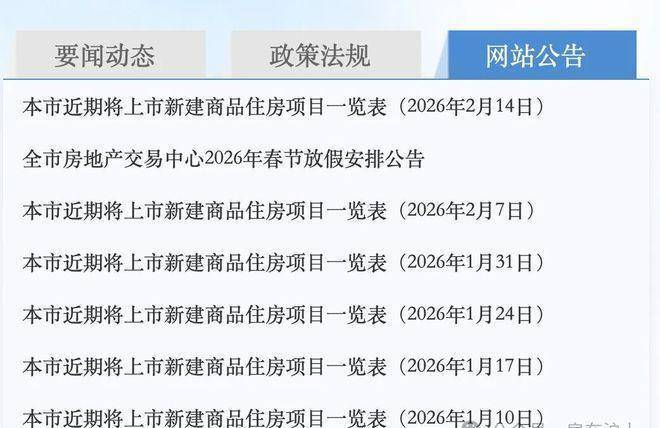 网上房地产网站“要闻动态”栏目下,最后一份清单定格在2026年2月13日(乙巳年腊月廿六)。
