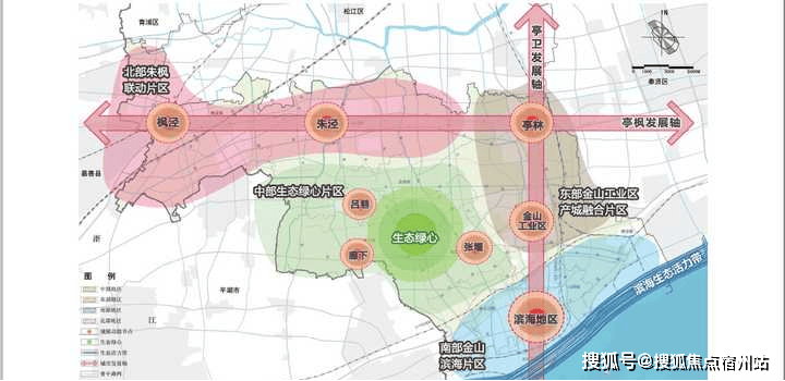 东部金山工业区以亭林镇和金山工业区为核心,包括漕泾镇部分区域,重点发展高新技术和战略性新兴产业,推动产城融合。