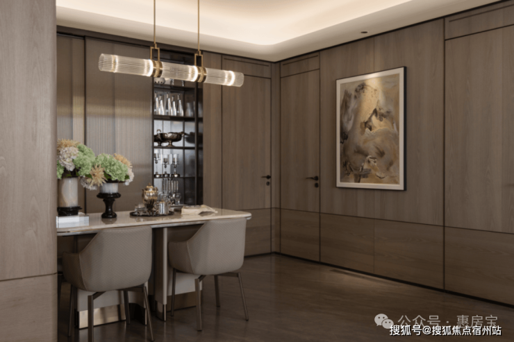 与常规新房室内没有门与墙的生硬拼凑感不同,江湾金茂府通过 大量木饰面、隐藏门 等细节,形成统一的设计语言,色彩与材质搭配协调统一,尽显整体美感!
