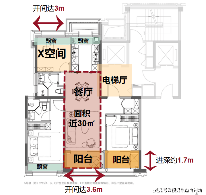 2.建面约119㎡:舒居改善的“平衡艺术大师”