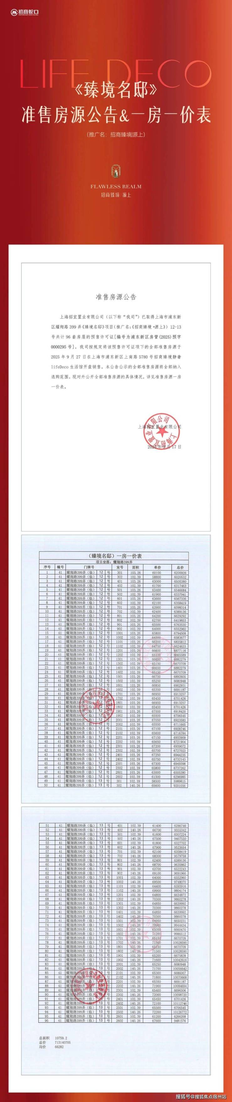 好消息,浦东三林 总价581万起 三阳台王炸产品【招商臻境】加推建面约95-150㎡公寓&叠墅!均价69657元/㎡!一房一价首发!