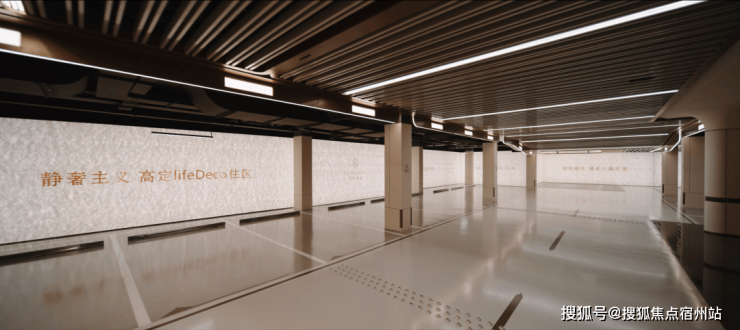 过去在豪宅项目才能看到的类似于“星空顶”地下车库坡道,招商臻境使用了看来 更加高级的香槟金色吊顶,并加上穹顶闪耀的“追光”坡道! 精装的地下大堂,配置了