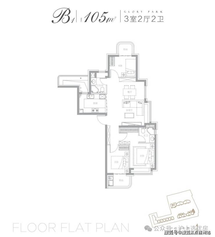 另外,一个优秀户型应该有的设计,包括入户玄关、3间卧室带飘窗、约270度采光面阳台、卫浴干湿分离...这个户型全部具备。