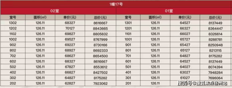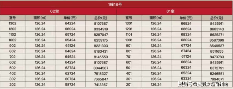 项目一房一价表▼