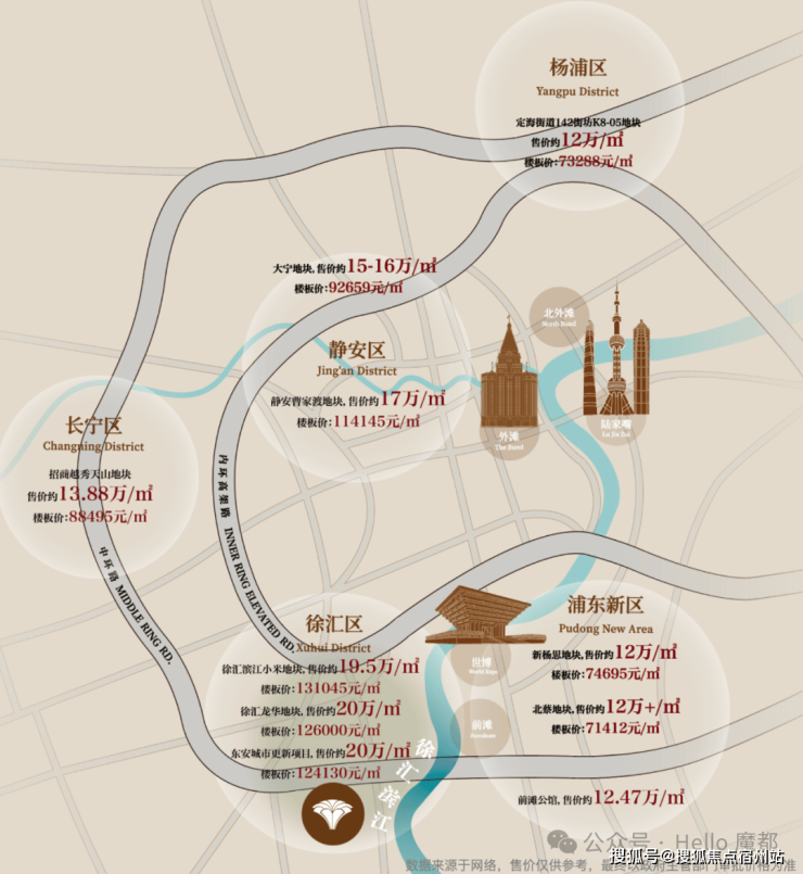 土拍热度蔓延到整个中环沿线,一片涨势四起。 位于浦东内中环的新杨思项目,业内预判至少单价在12万+;中环大宁板块项目,据传预计单价也在16万+。上海市区热势难减,沿中环线一眼望去价格涨势令人咋舌。