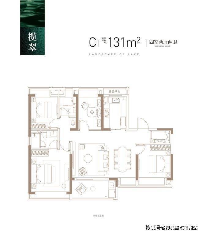 建面约131㎡C户型(四房)▼
