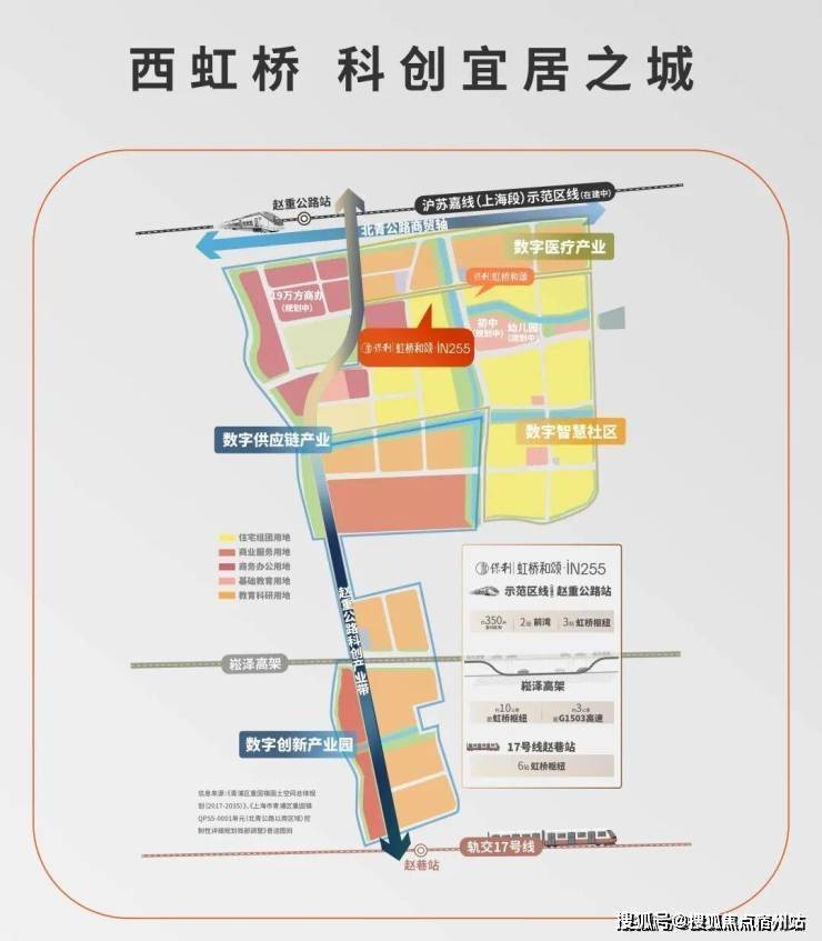 保利虹桥和颂·IN255不仅有轨交规划正在落地,且直线距离示范区线赵重公路站(在建)仅约350米,是不可多得的真轨交盘,2站前湾、3站虹桥枢纽、5站华为基地。