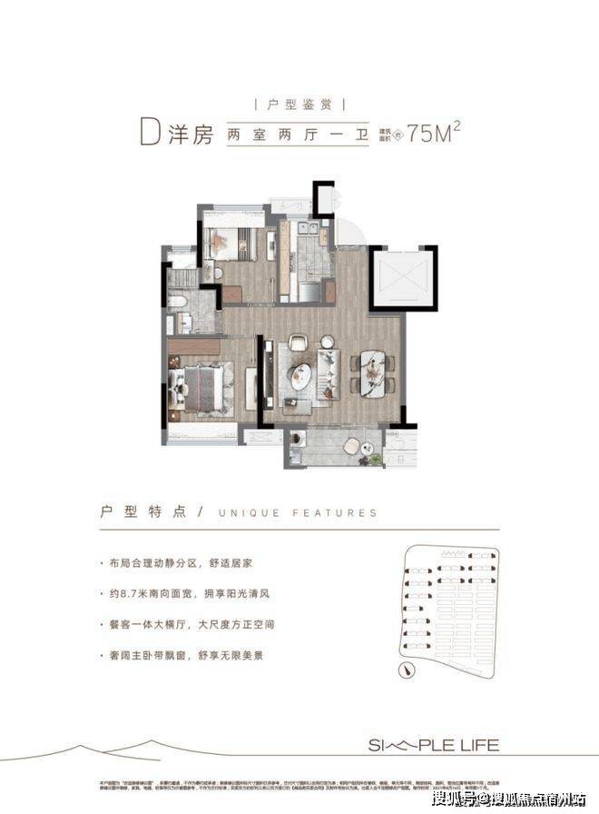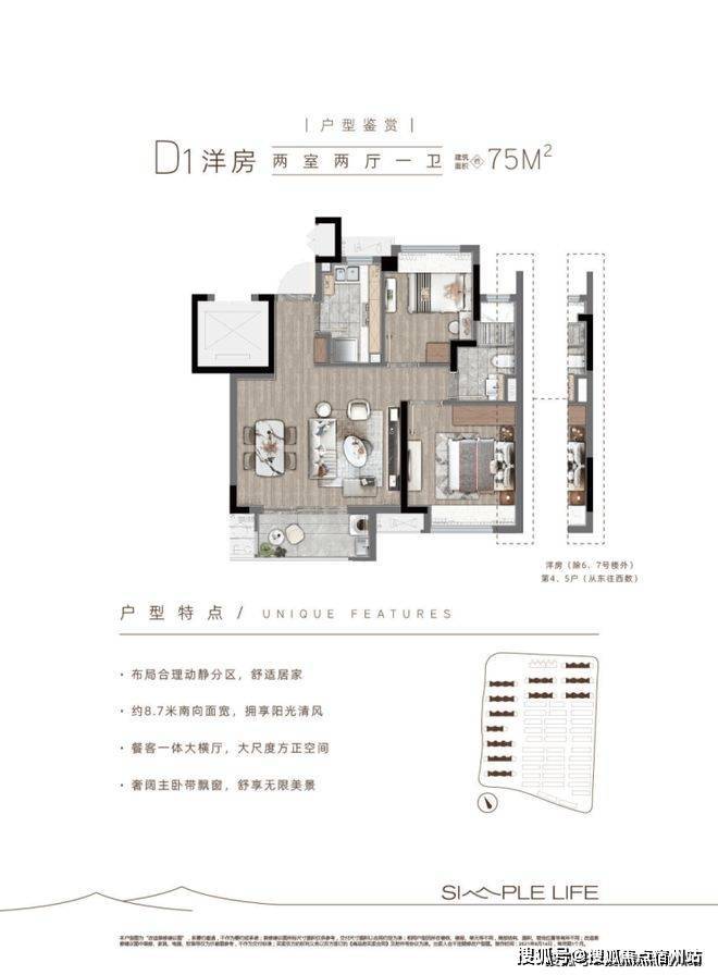 项目合计47幢楼,其中洋房12幢554套,联排33幢301套,项目整体分两批次推出,总计855套。采用人车分流,即保证社区整体设计的美观,又保证业主的安全性,车位有920个,做到1:1的比例。