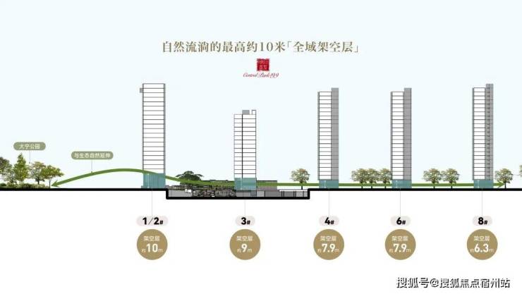 全域架空层,最高达10米,将社区生活平面整体抬升,隔绝尘嚣,营造真正的“悬浮社区”;规划建设人行天桥,直达大宁公园绿地,取之自然,打造无界绿色大宅。