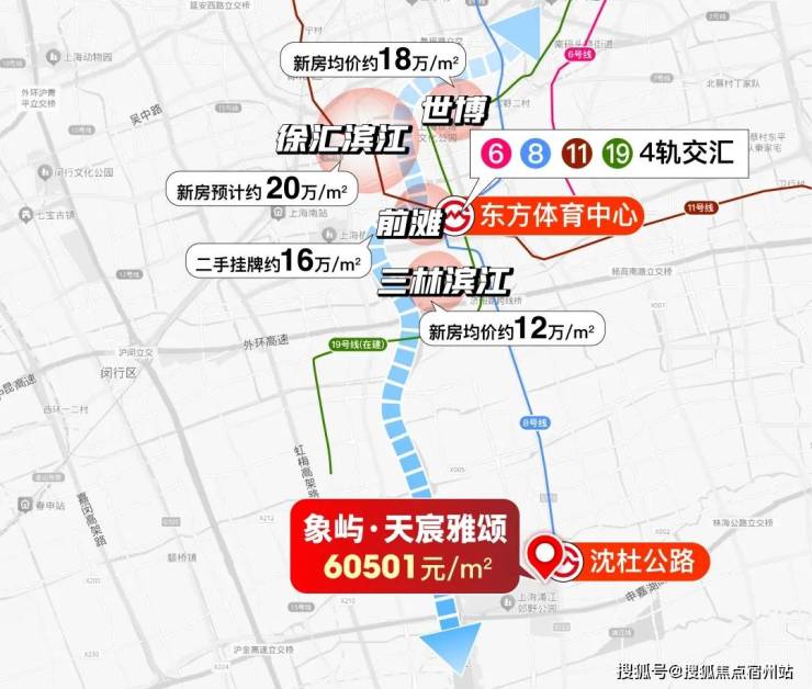 进站后可 6站直达二手房16万/㎡左右的前滩 , 7站可达新房预计20万/㎡的徐汇滨江 , 9站可达新房18万/㎡左右的世博 ,15站可达人民广场,16站可达陆家嘴!