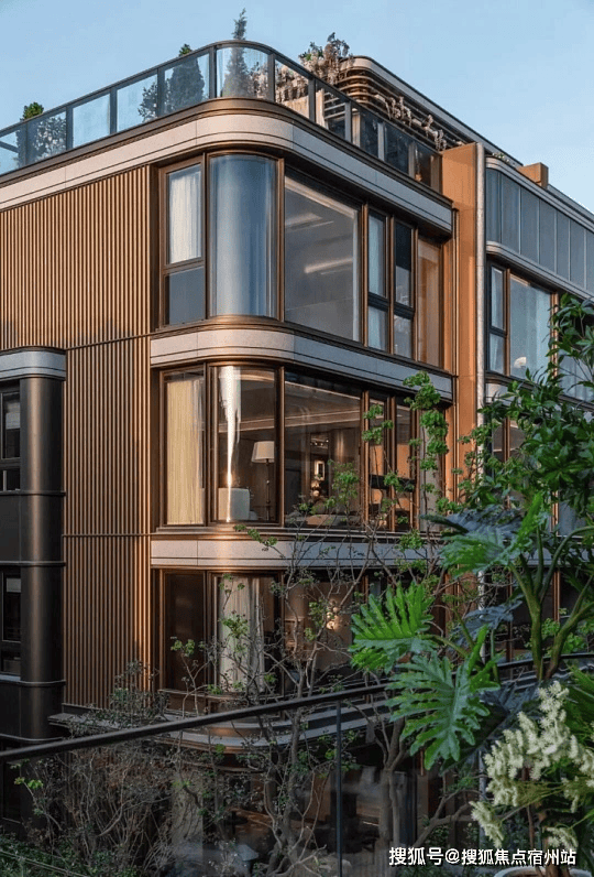 外立面采用亚马逊绿石材、范思哲黑瓷砖与大面积玻璃搭配,线条简洁流畅,兼具现代美学与高端质感,历久弥新。