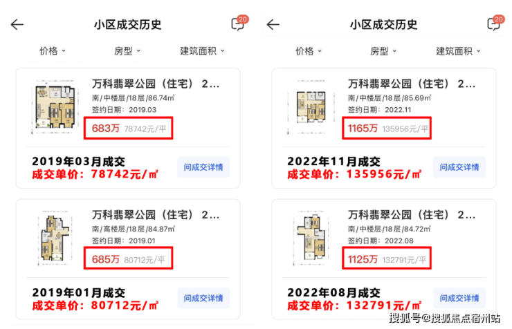 以张江万科翡翠公园为例, 2019年二手房成交价为7.87-8.07万/㎡,2022年最新成交价已经涨至13.27-13.59万/㎡!